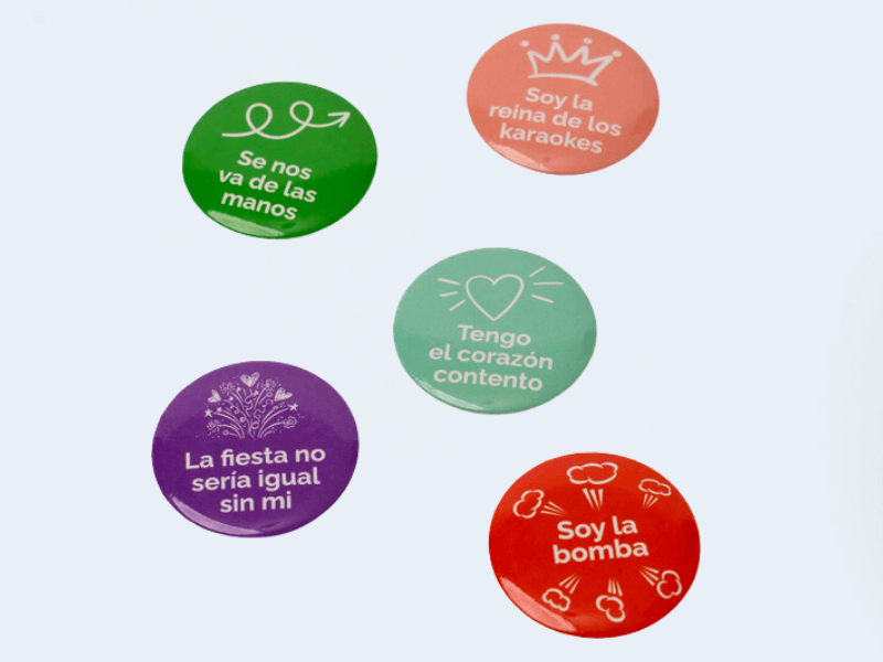| Chapa imantada | Cada chapa va sujeta en un cartón serigrafiado y empaquetada de manera individual |