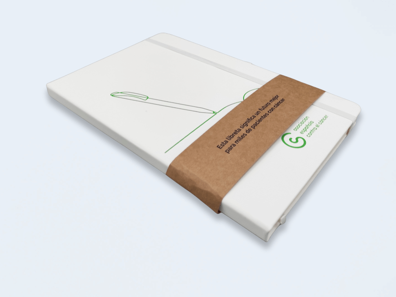 Anota tus ideas con esta libreta solidaria: diseño cuidado y papel de calidad. Una compra que suma a la investigación contra el cáncer. Esta libreta tiene un tamaño A5 con tapa dura de tacto suave y 80 hojas rayadas de color crema de 70 g/m².